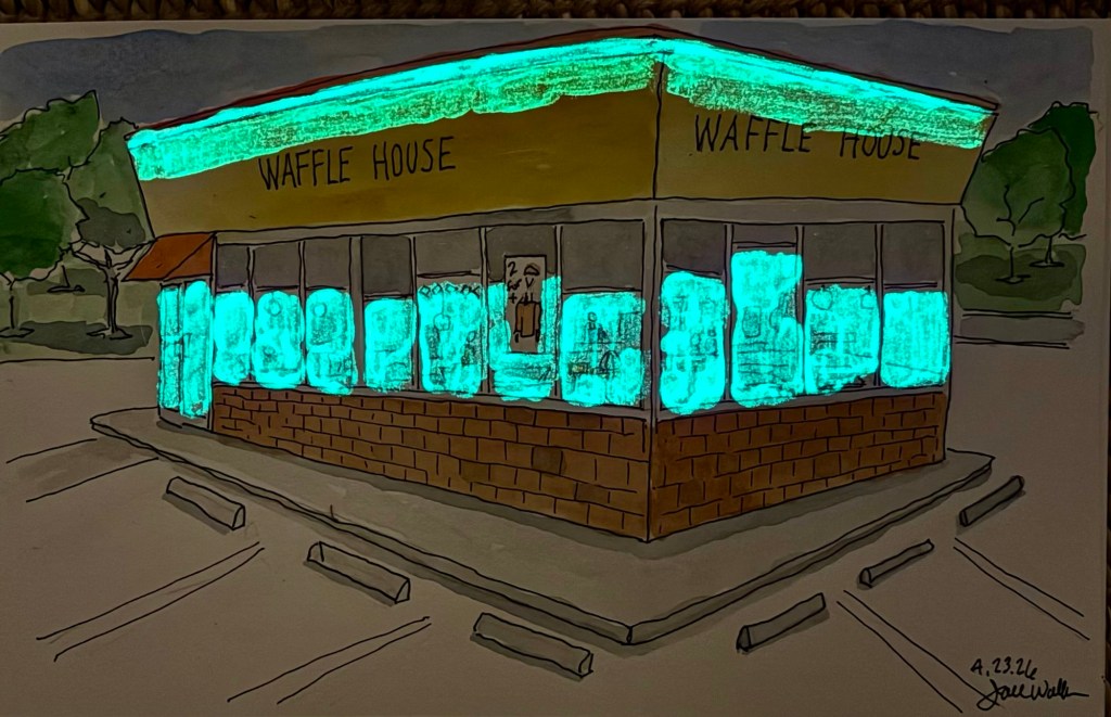Waffle House 0 April 26, 2026 Written by Levotexas During the day, and at night Share this: Share on X (Opens in new window) X Share on Facebook (Opens in new window) Facebook Share on Pinterest (Opens in new window) Pinterest Share on Tumblr (Opens in new window) Tumblr Share on Reddit (Opens in new window) Reddit Email a link to a friend (Opens in new window) Email Like Loading... Related
